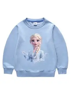 Свитшот детский Эльза голубой теплый хлопковый с принтом