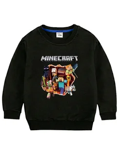 Свитшот детский хлопковый черный с принтом Minecraft