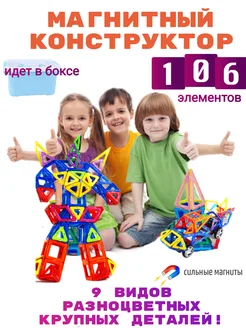 Магнитный конструктор 106 деталей, развивающий в контейнере