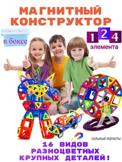 Магнитный конструктор 124 детали, разивающий в контейнере