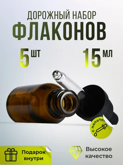 Флаконы косметические с пипеткой стеклянный набор 15мл 5 шт