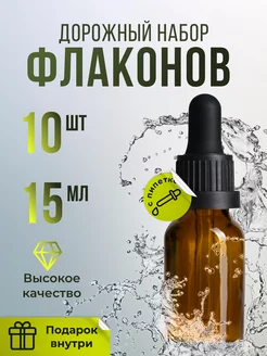 Флаконы косметические с пипеткой стеклянный набор 15мл 10шт