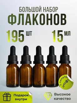 Флаконы косметические с пипеткой стеклянный набор 15мл 195шт