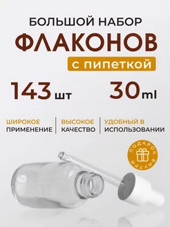 Флаконы косметические с пипеткой 30мл 54шт стеклянный набор