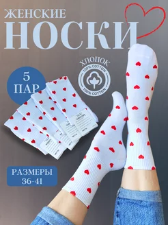 Белые Носки с сердечками 5 пар