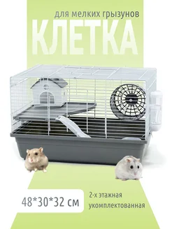 Клетка для хомяка, серая двухэтажная