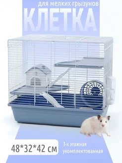 Клетка для хомяка большая, голубая трехэтажная