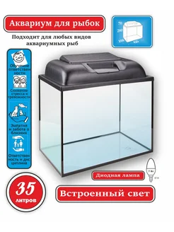 Аквариум для рыбок 35 литров с подсветкой и крышкой