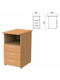 Тумба приставная 400х600х740 мм, 3 ящика, полка
