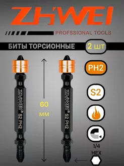 Биты торсионные ударные для дрели и шуруповёрта PH2x60мм