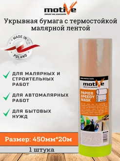 Укрывная бумага ремонтная с малярной лентой, 450мм*20м