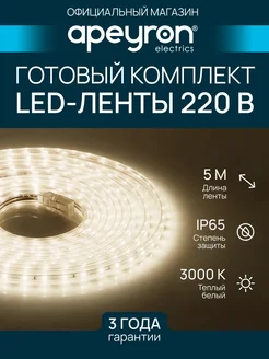 Комплект светодиодной ленты 220В 4,8Вт м, т б, 5м 3000К