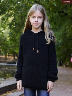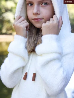 Теплая вязаная кофта с капюшоном