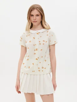 Блузка нарядная в горох с коротким рукавом