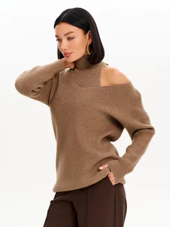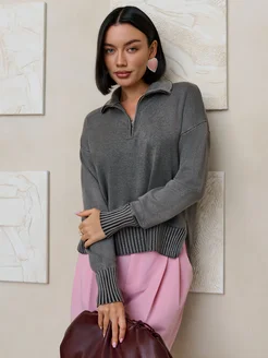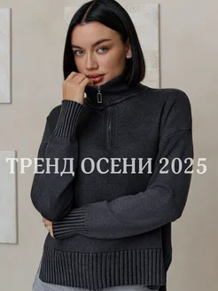 Свитер с горлом на молнии вязаный теплый оверсайз