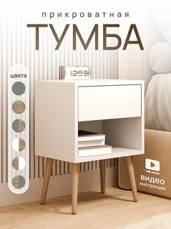 Тумба прикроватная на ножках белая с ящиком