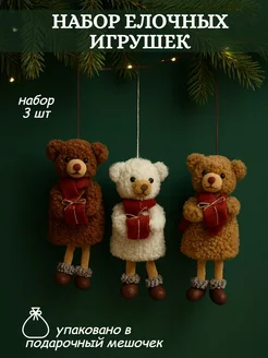 Елочные игрушки набор Мишки в шубках новогодние украшения