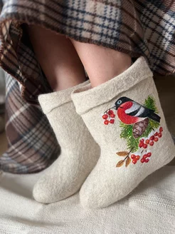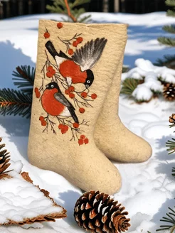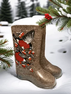 Валенки зимние снегири натуральные с галошами и росписью