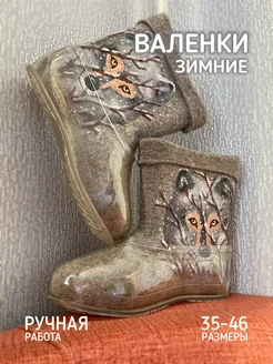 Валенки зимние войлочные галоша рисунок хаски