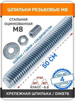 Шпилька крепежная, резьбовая М8, с гайками и шайбами L-50см