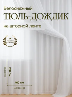 Тюль дождик в спальню и гостиную 400х260 белая