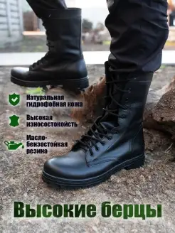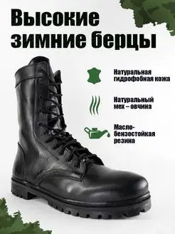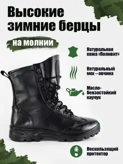 Берцы зимние из натуральной кожи на меху ботинки тактические