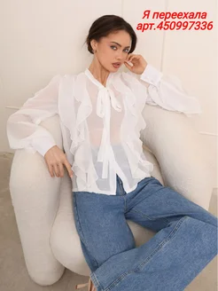 Блузка бохо нарядная с воланами офисная белая летняя