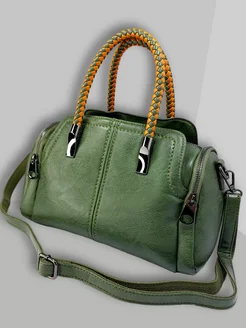 Сумка эко кожа средняя через плечо зеленая матовая