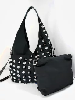 Сумка шоппер с черными стразами