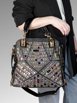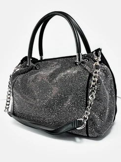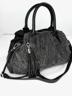 Сумка саквояж с серебристыми стразами