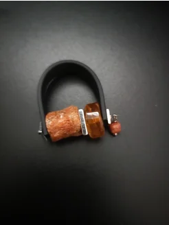 Кольцо с камнем коралл, янтарь на каучуке 20-20,5й р-р
