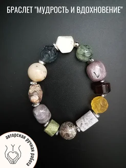 Браслет #29 флюорит, пренит, агат, чароит, яшма, кахолонг