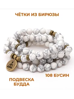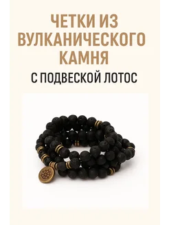 Четки будийские из вулканического камня с лотосом, 108 бусин