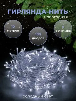 Светодиодная новогодняя гирлянда нить 10м 100 ламп