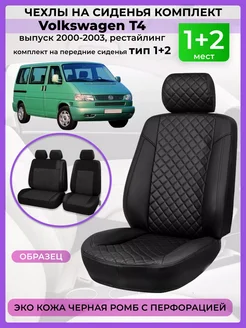 Чехлы на сиденья Volkswagen T4 рест 1+2, Экокожа romb