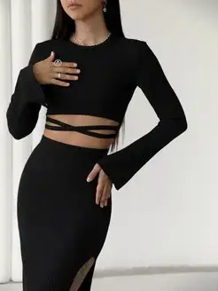 Асимметричные брюки палаццо с запахом и высокой посадкой