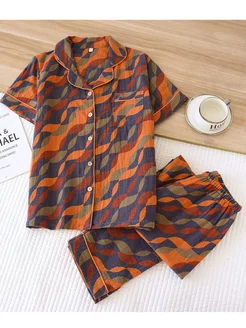 Муслиновая пижама со штанами и рубашкой домашний костюм