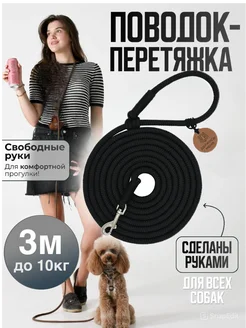 Поводок перетяжка для собак до 10 кг 3 м чёрный