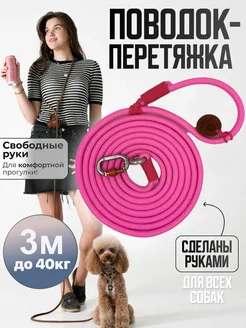Поводок перетяжка для пород до 40 кг 3 метра розовый