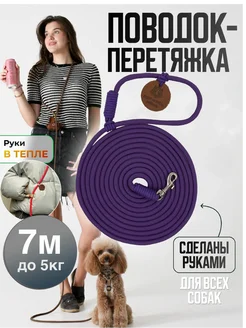 Поводок перетяжка для собак и кошек до 5 кг 7 м фиолетовый