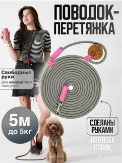 Поводок перетяжка для собак и кошек до 5 кг 5 м серый