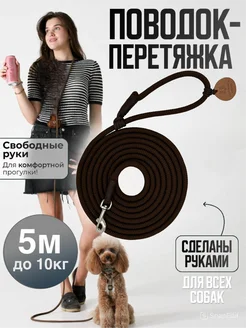 Поводок перетяжка для собак до 10 кг 5 м коричневый