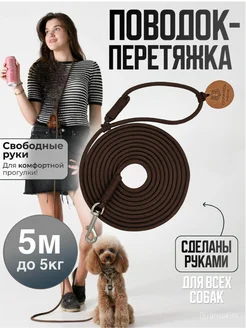 Поводок перетяжка для собак и кошек до 5 кг 5 м коричневый