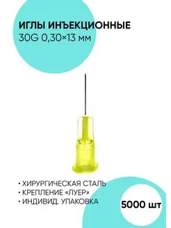Иглы 30G 0,3*13 мм, инъекционные одноразовые 5000 шт