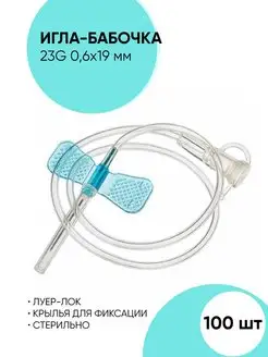 Игла-бабочка для вливаний 23G 100 шт