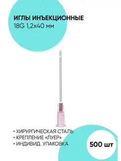 Иглы 18G 1,2*40 мм, инъекционные одноразовые стерильные