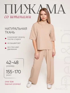 Брюки домашние на резинке палаццо в пижамном стиле для дома