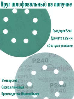 Шлифовальные круги на липучке 125 мм, Р240, 8 отв, 40 шт