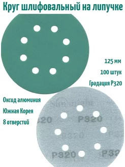 Шлифовальные круги на липучке 125 мм, Р320, 8 отв, 100 шт