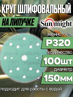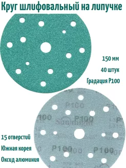 Шлифовальные круги на липучке 150 мм, Р100, 15 отв, 40 шт